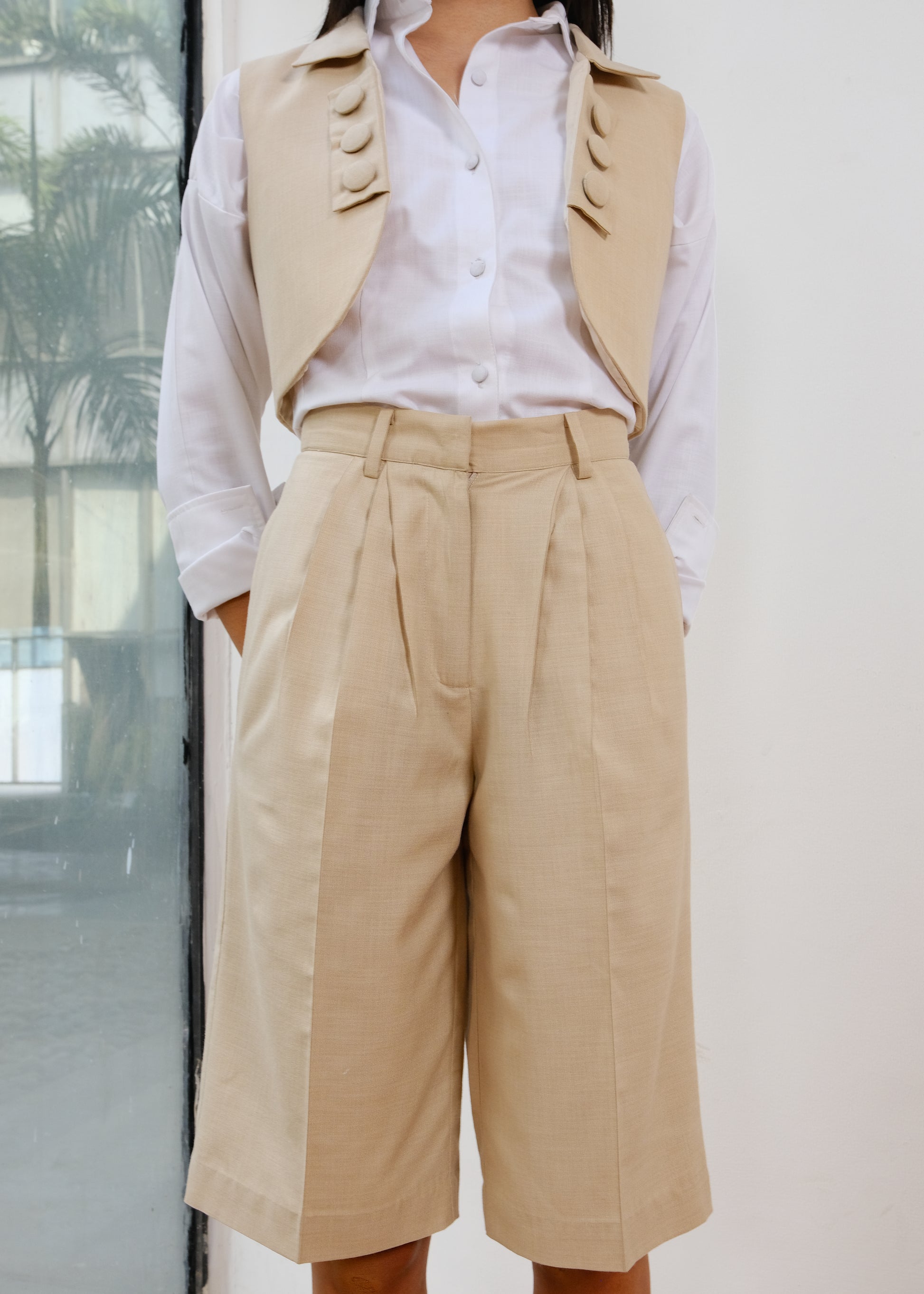 Effortless, sophistication meets casual cool with these tailored jorts, designed with a structured waist, clean lines, and refined fit for a luxury approach to modern street style.